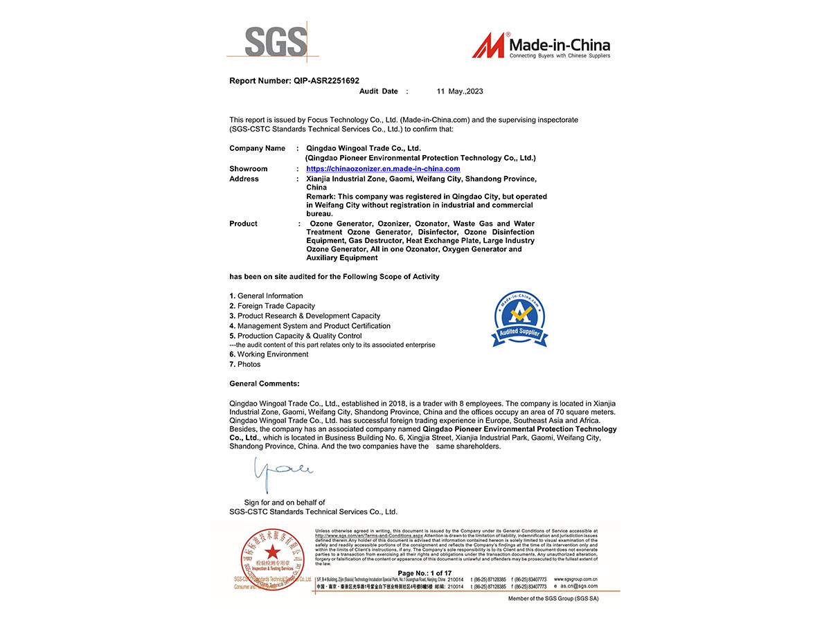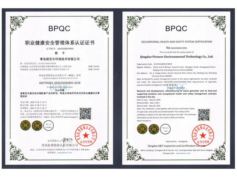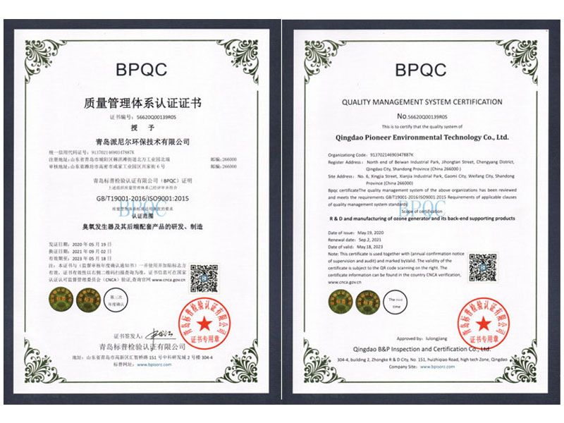派尼爾已通過(guò)了國(guó)家級(jí)高新技術(shù)企業(yè),ISO9000質(zhì)量體系認(rèn)證、ISO14000環(huán)境體系認(rèn)證、OHSAS18000職業(yè)健康管理體系認(rèn)證、知識(shí)產(chǎn)權(quán)管理體系認(rèn)證、臭氧產(chǎn)品“專(zhuān)精特新”證書(shū)等。公司擁有含發(fā)明專(zhuān)利,新型專(zhuān)利,軟件著作權(quán)等二十幾項(xiàng)國(guó)家級(jí)知識(shí)產(chǎn)權(quán)。